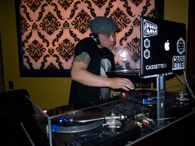 Our buddy Bling (Producer/Manager of Edward Sharpe And The Magnetic Zeros) spinning at the opening of Shin’s K-bbq in Hollywood….